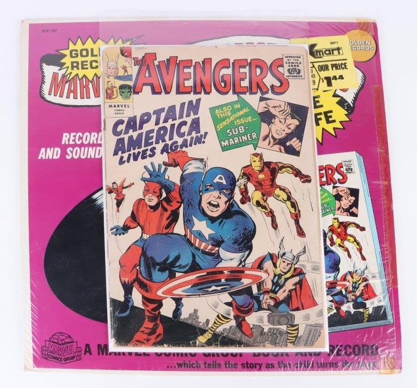 1966 Marvels Comics Avengers#4 Gold Record set. Includes: Avengers #4 and Matching Marvel Age Comics Golden Record.